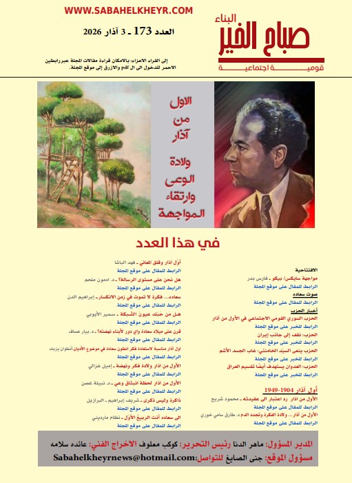 صدر العدد الثالث والسبعون بعد المئة من #صباح_الخير البناء والخاص بذكرى ولادة الزعيم أنطون سعاده: